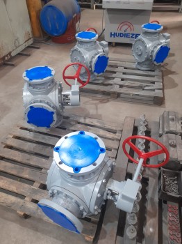 As válvulas esfera de três vias são fabricadas com corpo em aço inoxidável (AISI 316 ou AISI 304) e aço carbono, conforme a aplicação. Estão disponíveis nas normas ANSI e DIN, com portas roscadas, flangeadas ou com extremidades para solda.